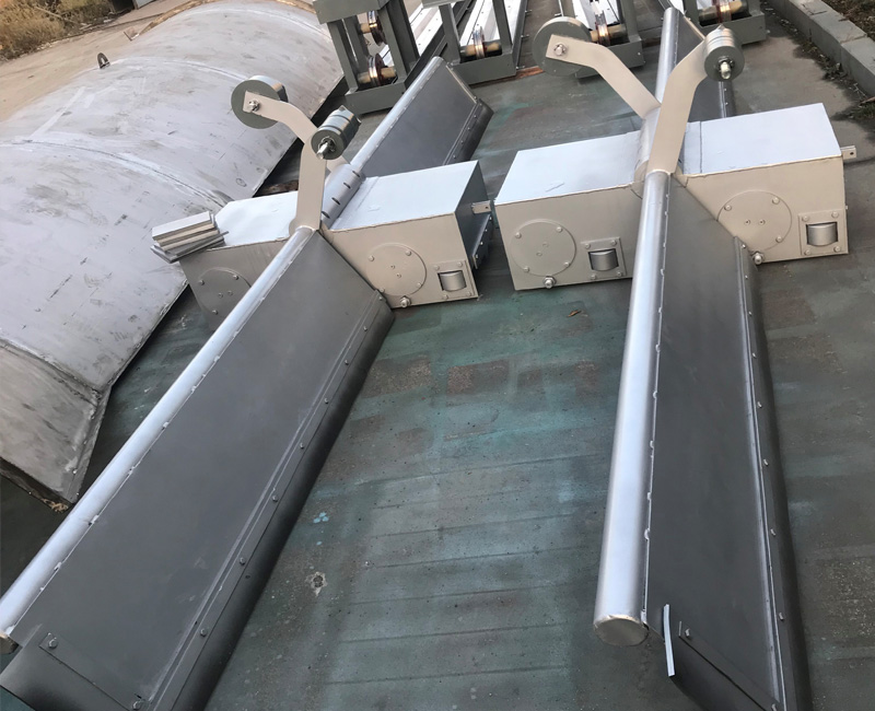单轨刮泥机的刮板在回转链条的带动下,将平流沉淀池底的污泥从出水区刮向进水区,最后将污泥刮到进水区域的集泥坑内集中排出,代替传统的边行走边抽吸的虹吸式排泥机。